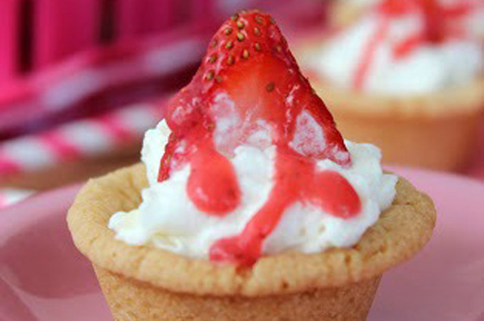 Everyone loves a cookie cup — just add milk and enjoy. This is a great play on that, but instead of milk, it calls for whipped cream and strawberries. Click here for the recipe.