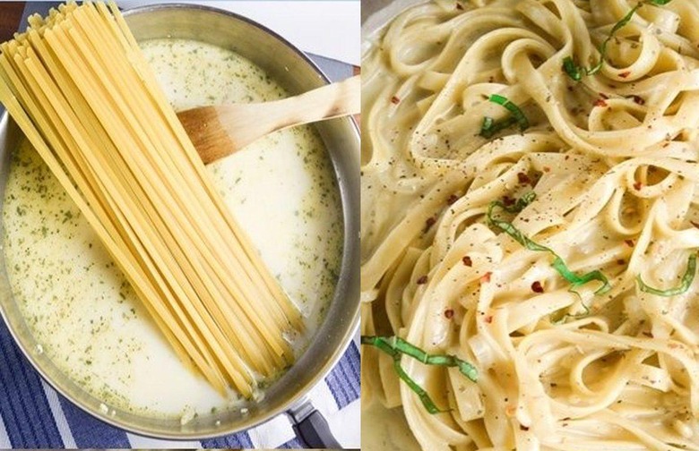 Cook the pasta directly in a garlic cream sauce for a more intensely starchy sauce — and fewer dishes in the sink!