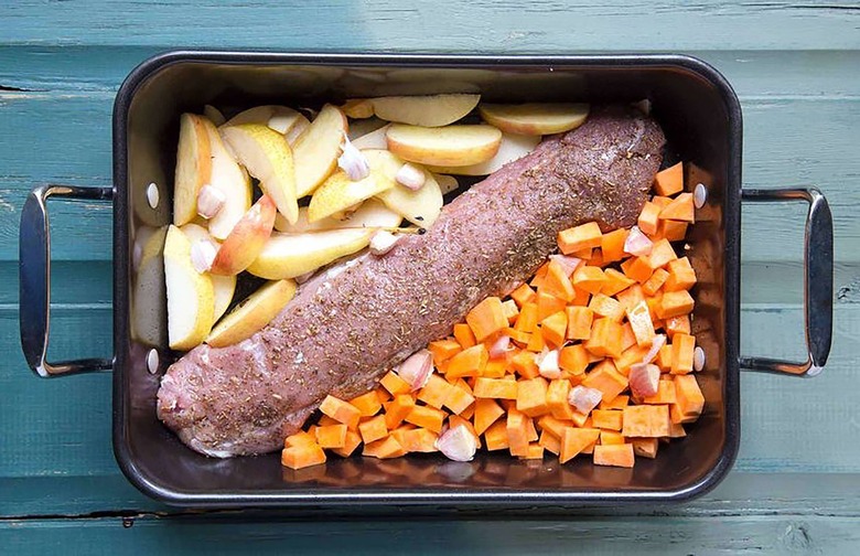 One-Pan Roasted Pork With Sweet Potato, Pear, Apple, and Garlic