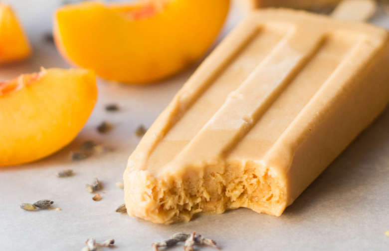 Made with protein-packed Greek yogurt, sweet-tart peaches, and floral lavender, these lavender peach popsicles are more like lavender peaches and Creamsicles. Does anyone else think of that 112 song any time they hear that phrase? Know what I mean? "Peaches and cream"? For the Lavender Peach Popsicles recipe, click here.
