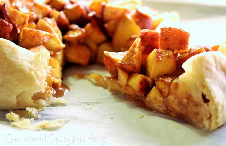 Galettes, a member of the tart family, generally consist of a single layer of pie crust with a layer of fruit — often one variety — arranged in the middle. Instead of the straight, square sides of a tart, the galette's edges are folded over, creating an open middle to display the fruit. With this simple pie, you have a delicious summer dessert with the aroma of cinnamon wrapped around juicy sweet peaches. For the Rustic Peach Galette recipe, click here.