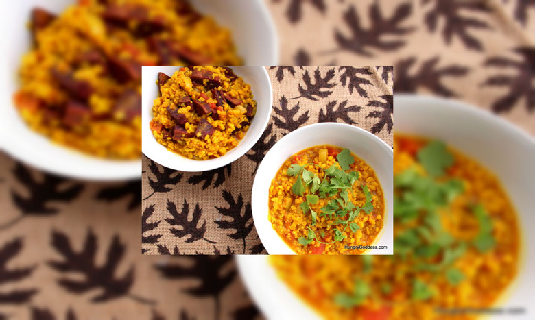 Get ready for a new comfort food to enter your world — khichuri! Looking for a healthful bowl of delicious that your body and palate will love? Traditional Indian khichuri is made with rice, moong dal (yellow split moong beans), turmeric, and coriander that is then cooked to a dish resembling risotto without the cheese. You can add veggies or additional spices per your taste. I swapped out quinoa for the rice with no problem, but you could also use basmati rice. — The Hungry Goddess
