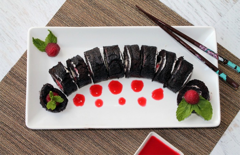 This moist and chocolatey cake is perfect for rolling (and filling with raspberries), so why not make "sushi"? Click here for the recipe.