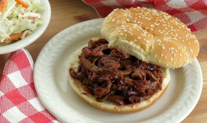 This week's winner comes from Marjory Pilley at The Dinner Mom, who brings us mid-week outdoor dinner using a slow cooker for pulled pork in a ridiculously good blackberry sauce.