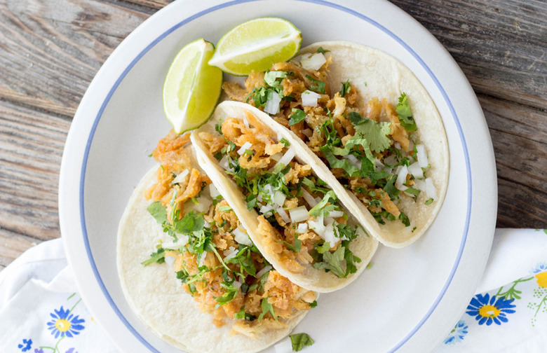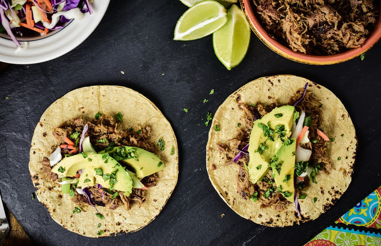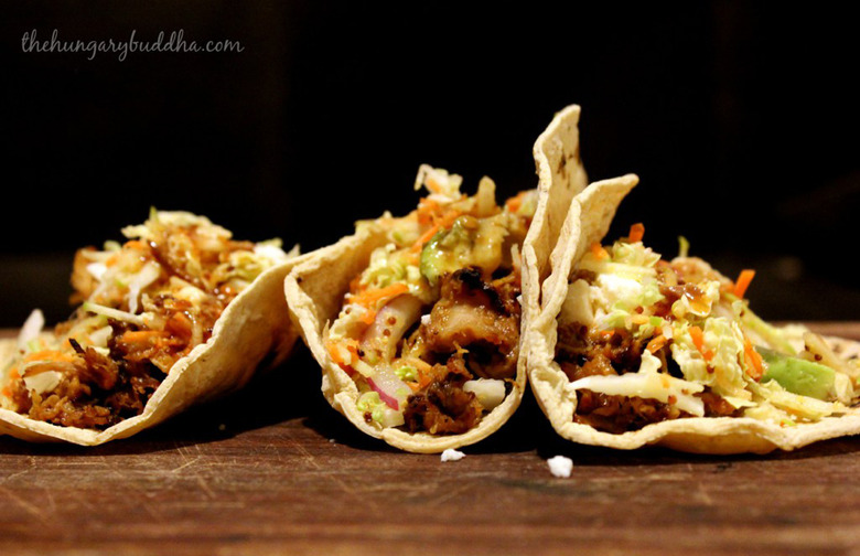 This recipe is loaded with a sweet sauce and tart slaw atop crispy slow-cooked pork, all wrapped in a corn tortilla. — The Hungary Buddha
