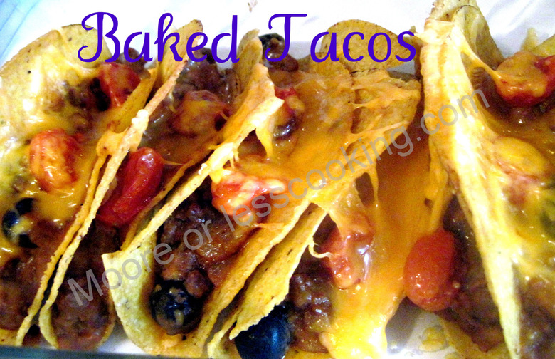 The great thing about tacos is that you can add any ingredient you like. This taco recipe is the basic recipe using ground beef, beans, onions, tomatoes, and cheese. — Moore Or Less Cooking