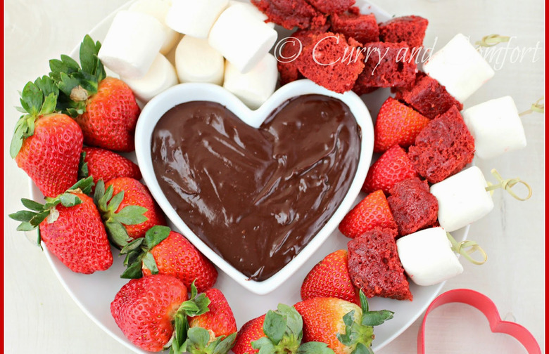 This is a great dessert to make if you're celebrating Galentine's Day this year! Enjoy this fondue with your girlfriends — serve the chocolate fondue with chunks of pound cake and fruit. It's simple, but super satisfying.