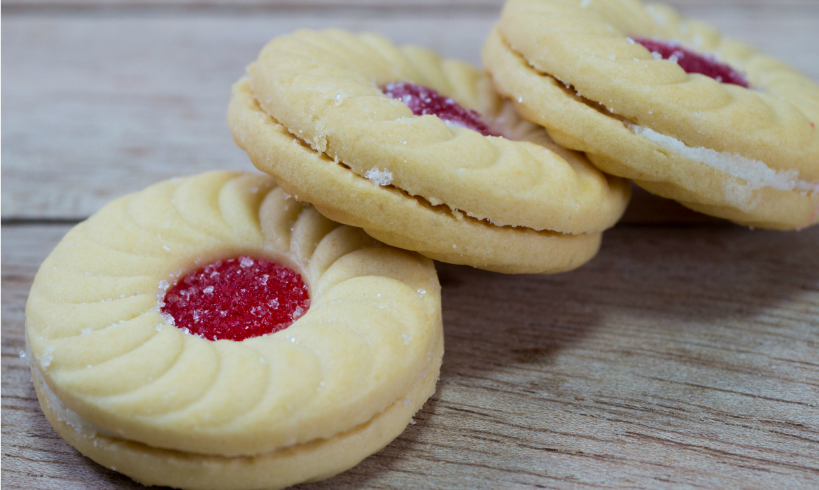 These are Indian shortbread cookies called nankhatai. A nankhatai is a simple eggless cookie with butter, flour, and sugar as the main ingredients. Some spice is added to give the cookies an extra zing. I used a mixture of besan (chickpea flour), all-purpose flour, and semolina as the base. Black pepper adds warmth to these sweet, buttery cookies and a little bit of fruity jam or almond on top gives these thumbprint cookies their last finishing touch. You can use any kind of nut or jam of choice. — Prerna Singh