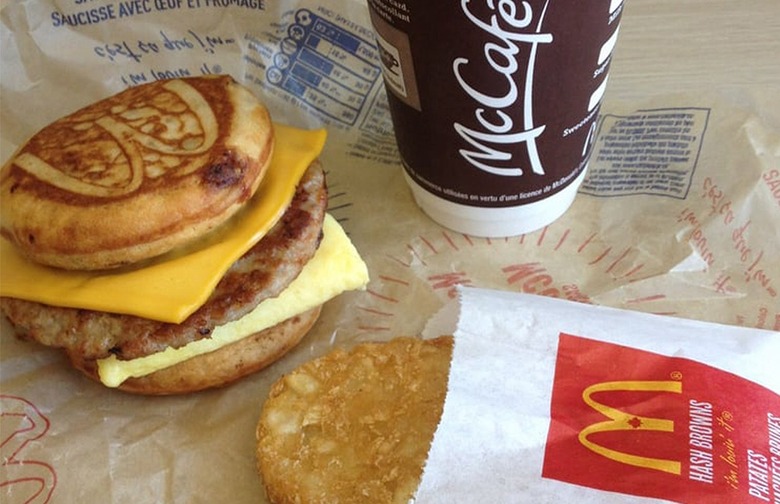 A pancake breakfast sandwich? Yes, please! I would want to have that every morning. That's essentially what McDonald's McGriddle is. Make delicious fluffy pancakes with maple syrup incorporated in them and sandwich sausage, eggs, or even bacon between two of them.