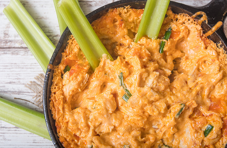 Buffalo chicken dip is a robust creamy dip featuring the unforgettable flavor of Buffalo wings but without the mess. It's like wings in a bowl! You're going to need to make at least two batches if you want it to last past the coin toss.