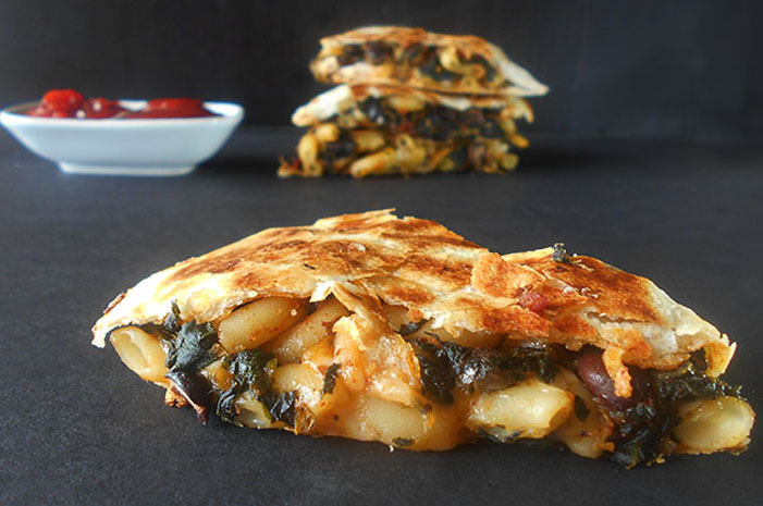 Combine quesadillas with Mexican macaroni salad for a heavenly meal. The next time you have leftover macaroni salad, stuff it inside a quesadilla and enjoy. For the Quesadilla with Macaroni Salad recipe, click here.