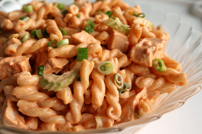 For this macaroni salad recipe, make your blue cheese dressing from scratch — it takes no time at all, and you'll really be able to tell the difference. For the Buffalo Chicken Pasta Salad recipe, click here.