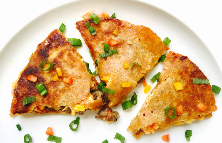 These quesadillas are a fun and hearty dish that will give your kids loads of energy throughout the morning. Not only do the quesadillas provide plenty of protein, they've also got fiber and carbs from the whole-wheat tortillas and vitamin C in all the vegetables. It's a breakfast designed to be playful — but also incredibly satisfying. — Justine Fontinell