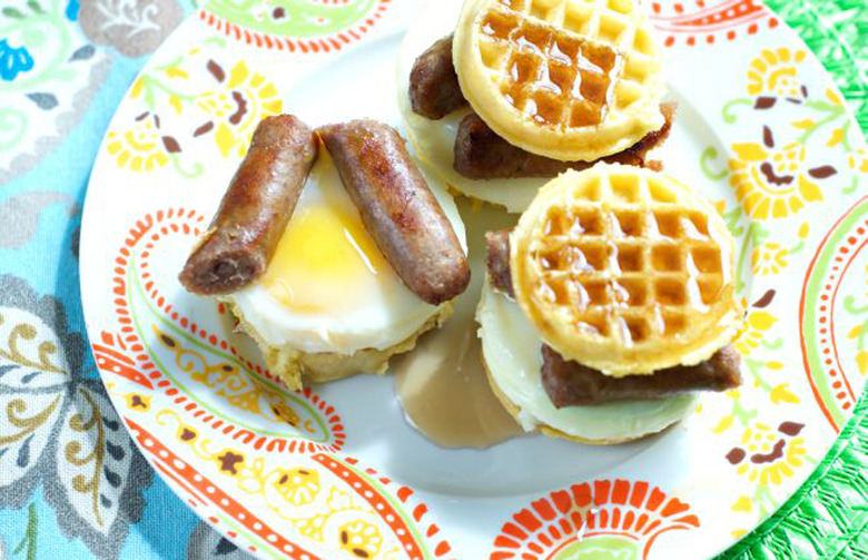 Mini Sausage, Egg, and Waffle Sandwich