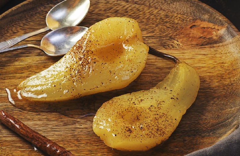 - Garnish with fresh mint leaves, and serve warm, with vanilla ice cream if desired. These pears are also excellent served at room temperature.