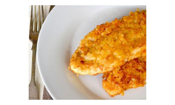 Who says chicken breast has to be coated in bread crumbs? This quick and easy recipe adds flavor (and crunch) by covering the chicken in sour cream and crushed potato chips before it's cooked.