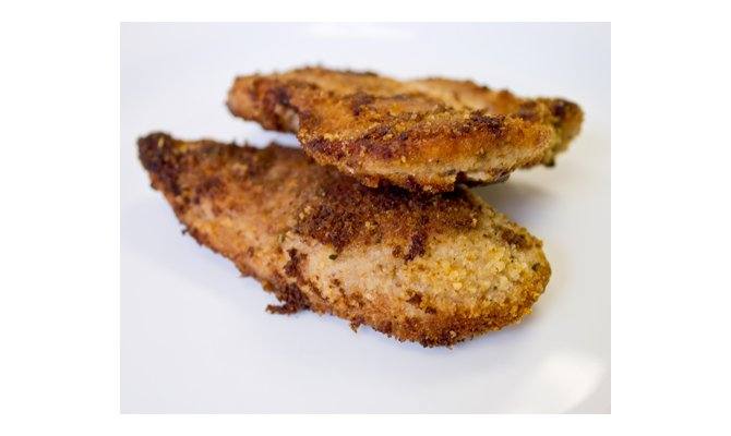 These crispy breaded chicken breasts are loaded with flavor thanks to the garlic, rosemary, oregano, and cayenne that's added to the bread crumb coating.