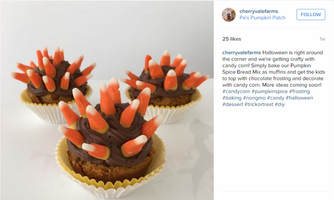 You can even make a banana Bundt cake or use the pumpkin spice bread to make cupcakes. Since Halloween is coming up use the Cherryvale farm mix to make cupcakes and decorate them with candy corn. There's loads of inspiration of the Cherryvale Farm's Instagram page.