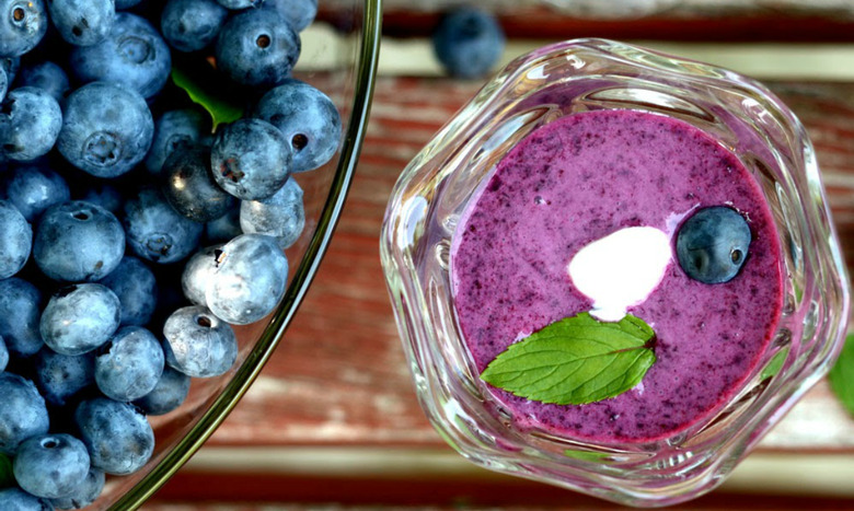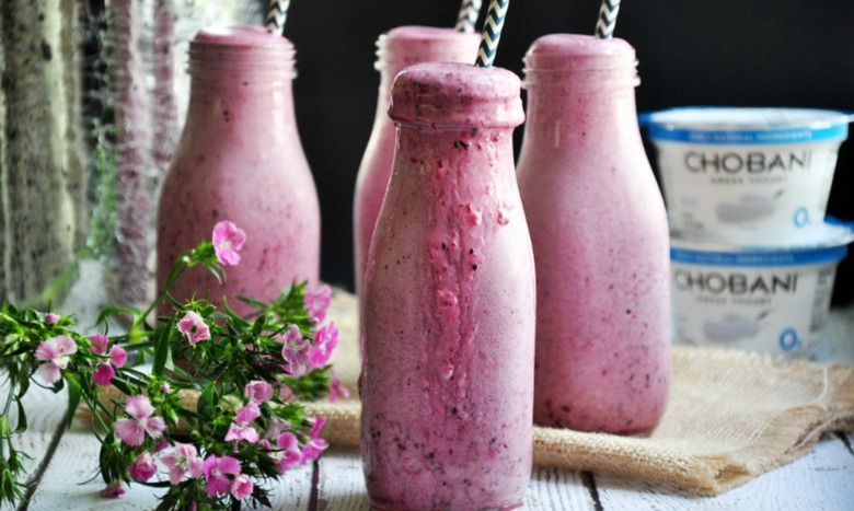 This classic berry smoothie is by far my favorite from my book "Seven-Day Super Smoothie Cleanse Action Plan." Made with frozen berries, Chobani Greek plain yogurt, vanilla protein powder, chia seeds, and water, it's packed with vitamins, protein, calcium, fiber, and iron. — Delish Plan