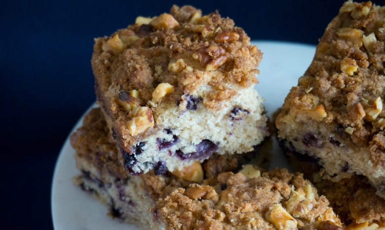 Grab your forks — it's coffee cake time! The popular sponge cake gets revamped with the addition of sweet blueberries. — Oat and Sesame