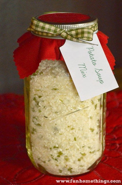 Perfect as a hostess gift, this pre-prepared recipe for Potato Soup Mix takes the guess work out of cooking for the whole family. Make extra jars for you and your family for a quick and easy weeknight dinner when it's too cold to go grocery shopping.