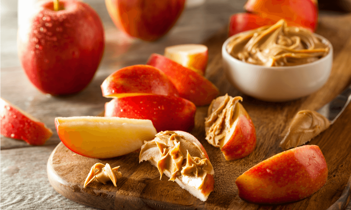 If you're vegan then peanut butter is possibly your go-to snack of choice. You can enjoy peanut butter with slices of apples or bananas for a sweet treat.