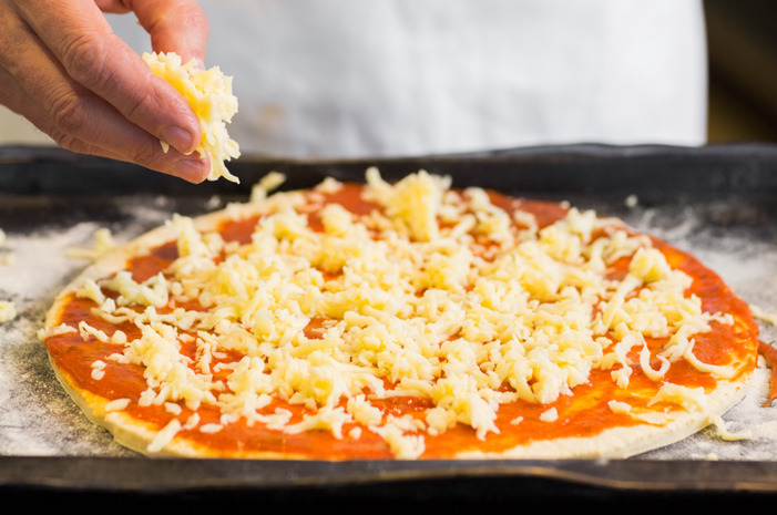 To make the ultimate cheese pizza, one cheese won't cut it, so use two. We recommend a combination of mozzarella cheese and Parmigiano-Reggiano.