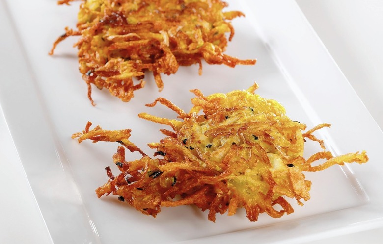 Fry these mixed vegetable fritters made of squash, potatoes, onions and zucchini in batches, six minutes a batch.This recipe by Ayelet Danino appeared in the Chicago Tribune.