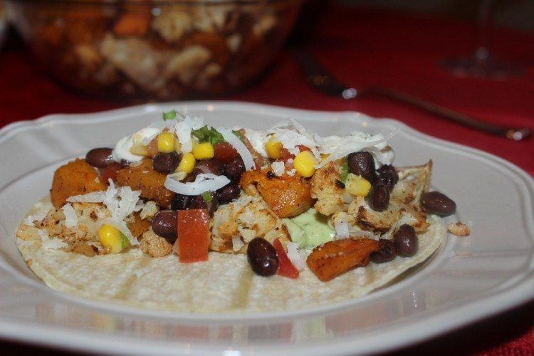 Roasted Butternut Squash and Cauliflower Tacos With Cilantro-Lime Crema