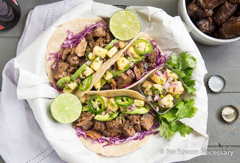 If you've never had pineapple in your pork tacos, you really mustn't waste another moment. These pineapple pork tacos from My Suburban Kitchen use pineapple juice while the pork is cooking, as well as the fruit itself in a fresh salsa with mango for a great sweet topping that is balanced with red onion and lime juice. Cook the pork for these tacos in a slow cooker for a dish that you can just set and forget.