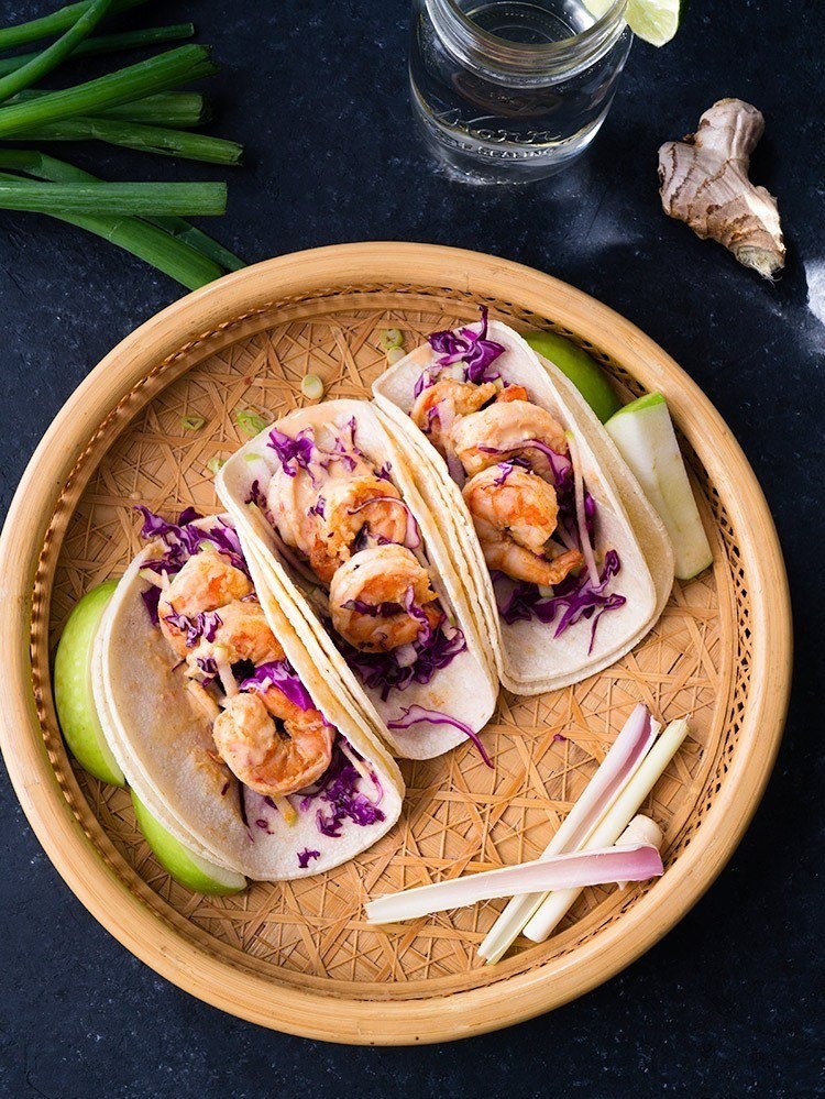For the Pan-Asian Shrimp Tacos With Cabbage and Apple Slaw recipe, click here.