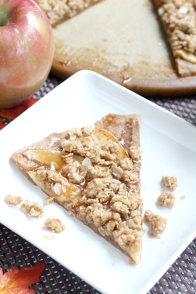 Dessert pizzas are easy recipes that the whole family can help with. Customizable with a number of various mix in options, this version is made with apples and oats for the perfect fall treat.