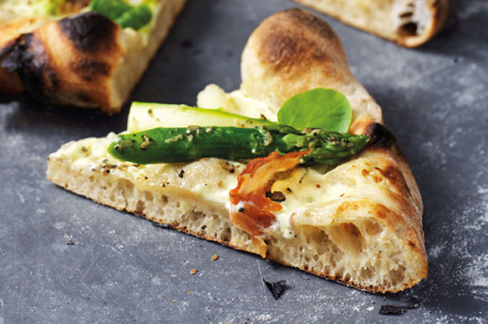 Whip up a batch of your favorite pizza dough; spring has sprung and your seasonal asparagus pizza is getting topped with bacon and mozzarella. If you can't find the truffle called for in this recipe, try finishing the pie with a drizzle of truffle oil instead.
