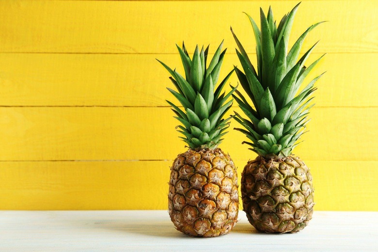 Pineapples — those odd, bumpy, yellow fruits with tough, mottled skin and spikey leaves that jut out at a sharp angle. Named by early European settles in America for their resemblance to pine cones, pineapples take about 18 months to grow, and each plant produces only one fruit per year. Until Columbus encountered them in 1493, pineapples were completely unknown to Europeans. Unripe pineapples can actually be poisonous, and adding pineapple to gelatin will prevent it from setting.