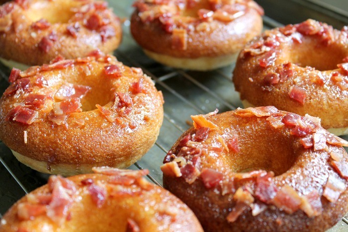 Sometimes it's a challenge making after school snacks interesting, but not with these sweet honey glazed donuts topped with salty bacon! They're made with Krusteaz's Honey Cornbread & Muffin Mix and are ready in just 20 minutes.
