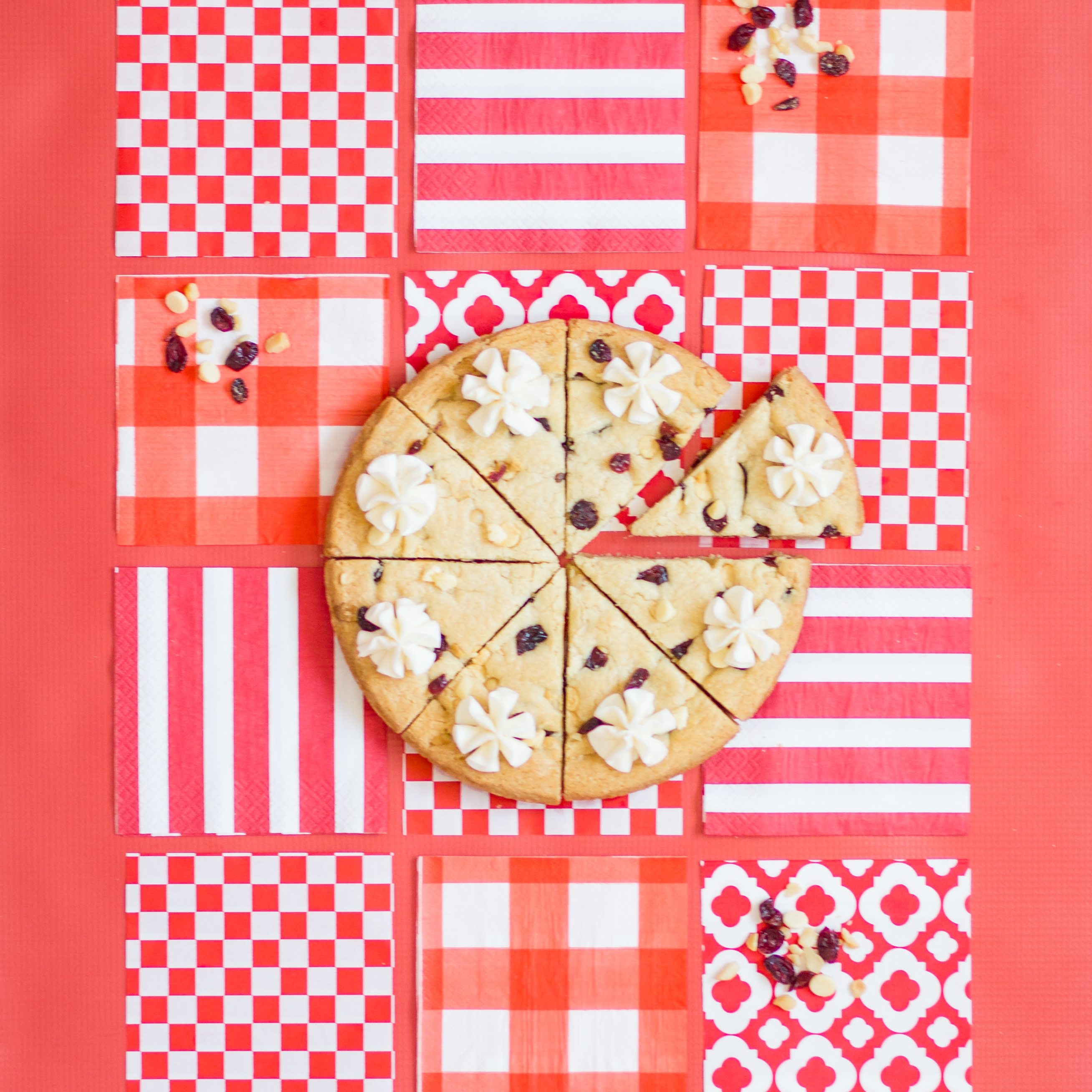 Filled with cranberries, crunchy macadamia nuts and melted white chocolate chips, this Sugar Cookie Pizza will be gobbled up in minutes. Sprinkle fresh blueberries on top for something blue!