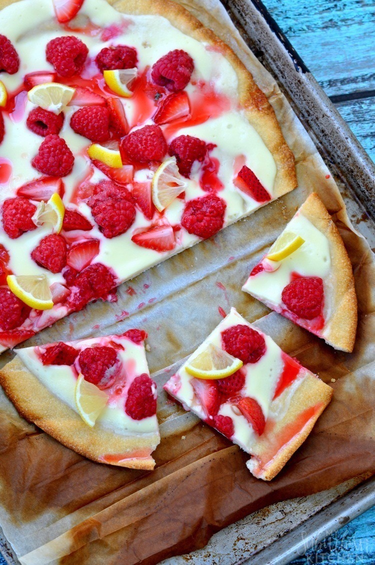 Cheesecake pizza: a combination of two independently wonderful foods. This recipe from My Suburban Kitchen uses store-bought pizza crust and spreads a tasty cheese mixture and fresh strawberries over the partially cooked crust before returning it to the oven. The result is a quick, delicious summer dessert.