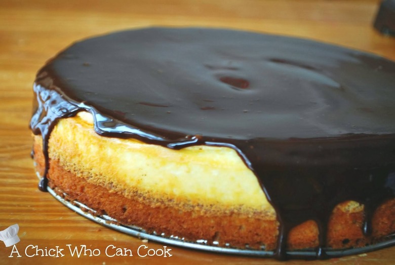 This cheesecake from Chick Who Blogs uses all the components of a Boston cream pie and replaces the cream layer with cheesecake for what is surely a winning dessert.