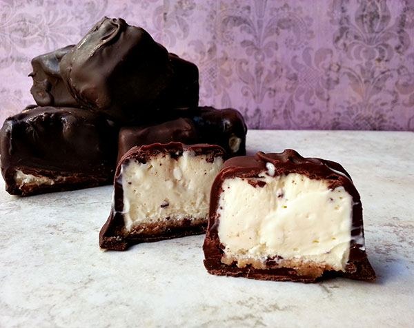 Make these chocolate-covered cheesecake bits from Cherry On My Sundae and keep them in the freezer for a convenient way to satisfy a sweet craving. They are also great for large parties or gatherings.