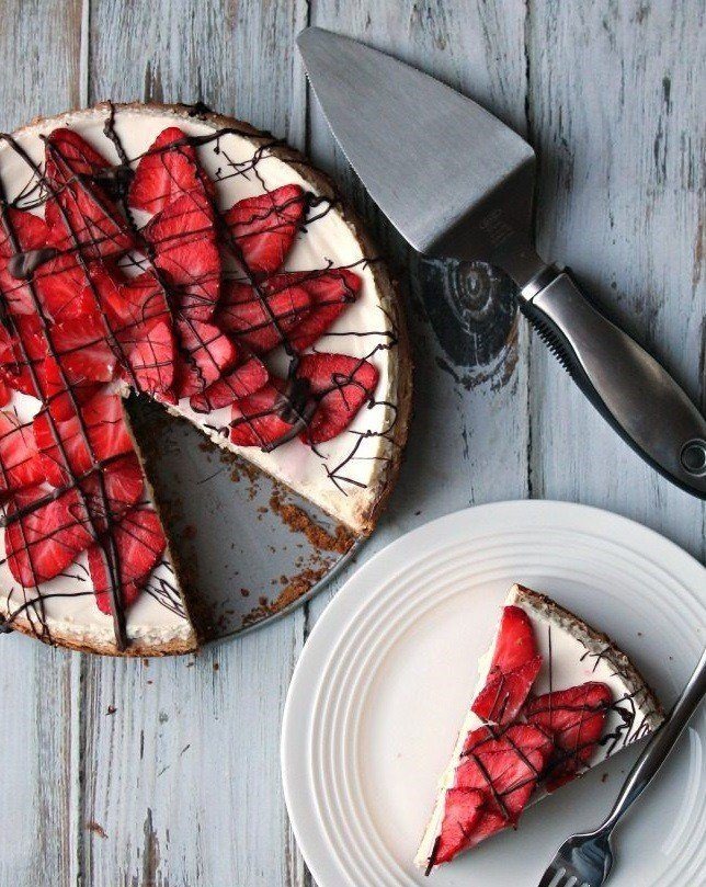 Brought to you by Foody Schmoody Blog, this stunning cheesecake uses chocolate-covered strawberries to cover a multitude of sins, and a sweetened sour cream topping to cover any cracks. As well as lovely decoration, the flavors of the fresh strawberries go deliciously with cheesecake. This dessert is sure to be well received whatever the occasion.