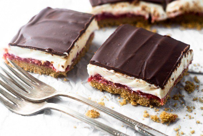 For the No-Bake Raspberry Cheesecake Bars recipe, click here.