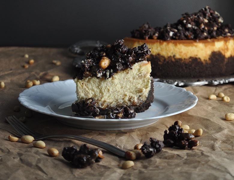 Peanut Butter Cheesecake With Chocolate Peanut Butter Crunch Topping
