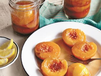 We love this recipe from the All New Ball Book of Canning & Preserving for Sweet Tea-Poached Peaches. Packing your peaches in fresh-brewed sweet tea is a tasty alternative to water or sugary syrup. Select your own favorite tea flavor for true customization.