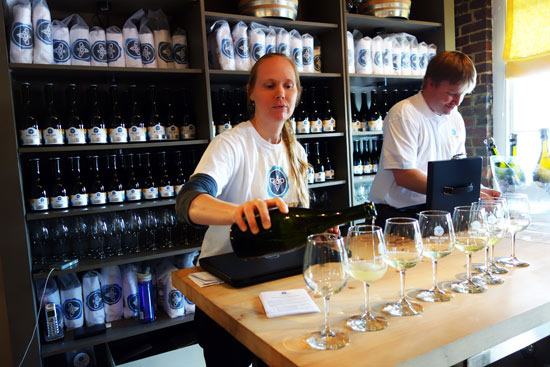 In fact, all of Blue Bee's ciders seemed to drink more like dry wine than fermented fruit juice. Far from the one-dimensional juice-box sweetness of the ciders I've grown accustomed to, the flavor profile of each of Blue Bee's varietals is complex enough to require thoughtful sipping to entangle it. According to founder and cider maker Courtney Mailey, it's something about the flavor of Virginia apples that makes the difference. I say her passion and dedication to changing the way people think about apple cider has something to do with it as well. The ciders come in 500-milliliter or 750-milliliter corked glass bottles with elegant labels reminiscent of champagne bottles. The tasting itself is conducted much like a tasting at a winery, with Mailey guiding guests through each pour. She also leads tours through the production facility free of charge, eagerly explaining the processes that give rise to her beloved product.