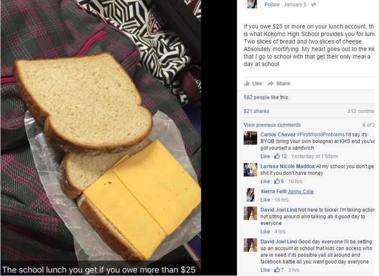 Read MoreStudents at Kokomo High School in Indiana are complaining that anyone with a lunch debt of over $25 gets a plain cheese sandwich