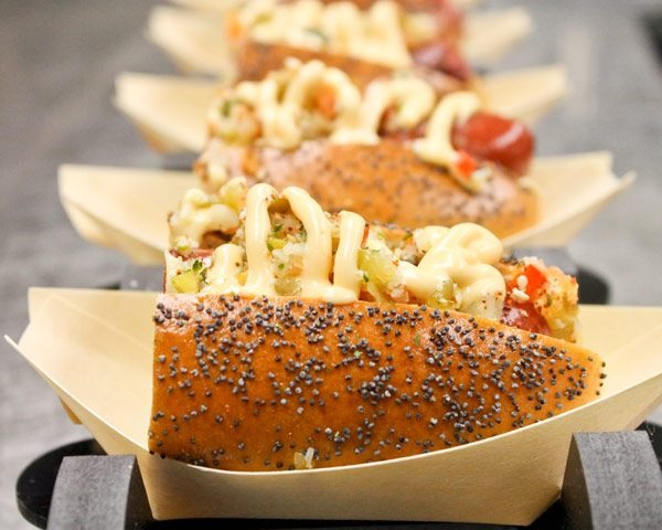 In deciding what to serve at the 50 Yard Lounge, the chefs took inspiration from the food they serve aboard their ships. Celebrity Cruises resdtaurants feature a variety of cuisines including American, Asian, and European. For the 50 Yard Lounge, Chef Rufino and Chef Thomas created dishes that showcase multiple concepts while still being game-day appropriate.