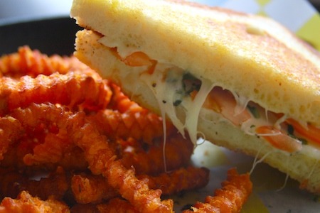 If you're not feeling up to a side of self-loathing with your grilled cheese, there are tamer yet equally interesting options, including "The Caprese," which we also tried. This delicious morsel, served on sourdough, features mozzarella, tomato, olive oil and crushed basil with creamy pesto mayo. It's a refreshing yet indulgent take on a classic that's suitable for vegetarian drunchies or a casual lunch. Paired with Cheesie's perfect crinkly sweet potato fries, you can't go wrong.