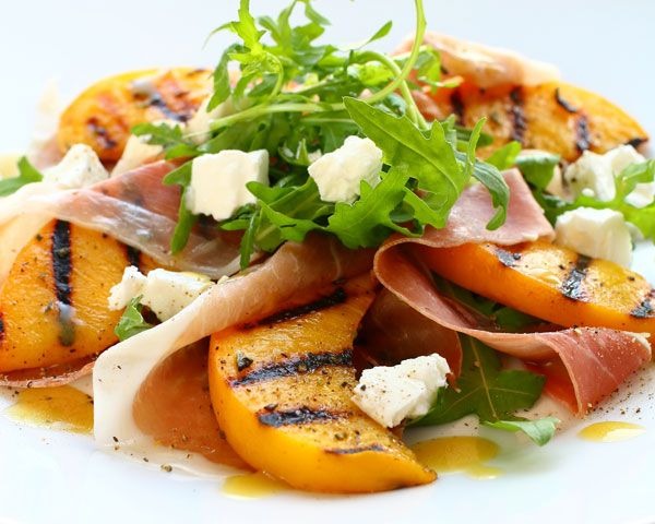 Click here to see the Grilled Peach, Feta Cheese, Arugula, and Dandelion Green Salad Recipe