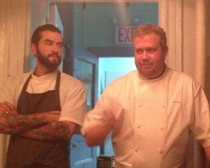 The restaurant's emphasis will be on a large wood-burning oven, and most of the dishes served at the dinner spent time over an open fire (or, in the case of the beets, buried under hot coal). Fry has brought on Joe Schafer (at left in the photo) to serve as executive chef, and the restaurant is scheduled to open in April.