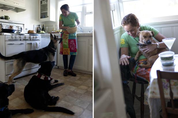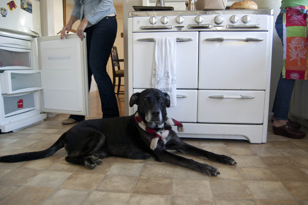 The head honcho of the dogs, Mickey, gets the prime spot by the stove in the kitchen. Tracht kept most of the kitchen intact when she moved in some nine years ago, but replaced the stove with a vintage O'Keefe & Merritt four-burner range. "It gets hot when you need it to, its consistent heat, it's my baby," Tracht says.